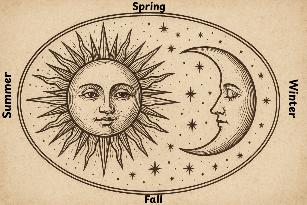 The revealed, cognitive time is the solar time, the time of order, action, understanding, the agricultural cycle, economy, and society. It moves by the visible and measured light, “to govern the day.” It is a time ruled and measured by consciousness: what we do, when we plant, when we harvest.
